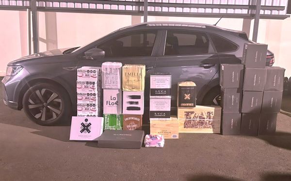 Durante rondas na região de fronteira, os policiais abordaram um veículo com dois ocupantes e identificaram o transporte de mais de 130 garrafas de vinho de origem estrangeira, também sem a devida regularização.