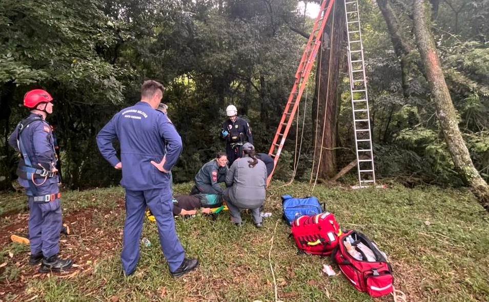 Após os procedimentos no local, o homem foi transportado de helicóptero até o hospital de São Miguel do Oeste para atendimento médico.