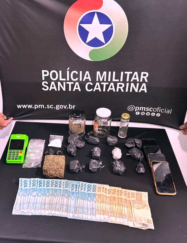 No interior da residência, foram encontrados R$ 2.500,00, embalagens tipo zip lock utilizadas para embalar a droga, maquininha de cartão e aparelhos celulares.
