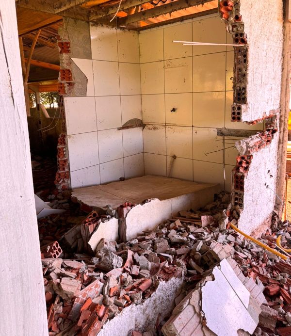 Segundo relatos da vítima, uma parede caiu sobre seu membro inferior esquerdo, ocasionando fratura fechada na fíbula e entorse no tornozelo.