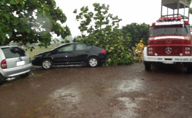 Árvore cai sobre veículos durante temporal em Iporã do Oeste