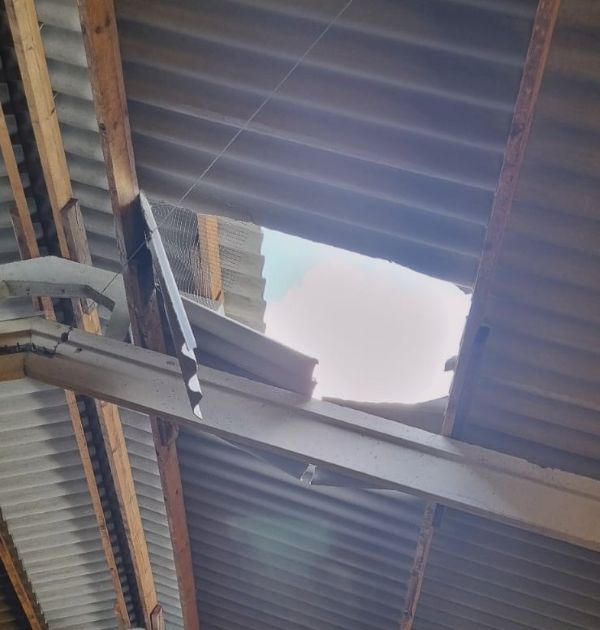 Ao chegar ao local, a equipe confirmou que se tratava de uma queda de telhado.
